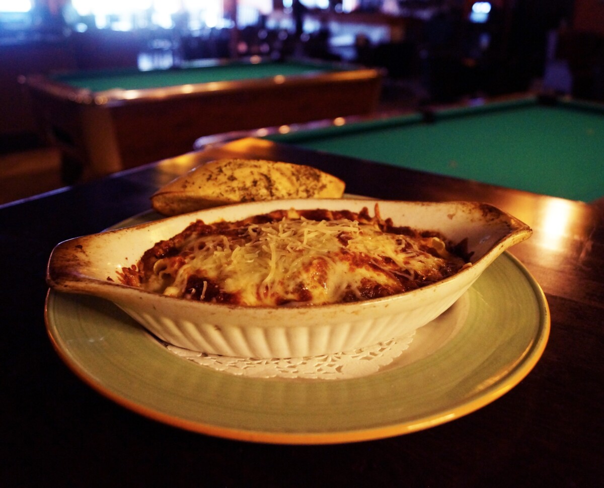 A rich meat sauce layered between tender noodles, topped off with a selection and blended cheese. Served with garlic toast.